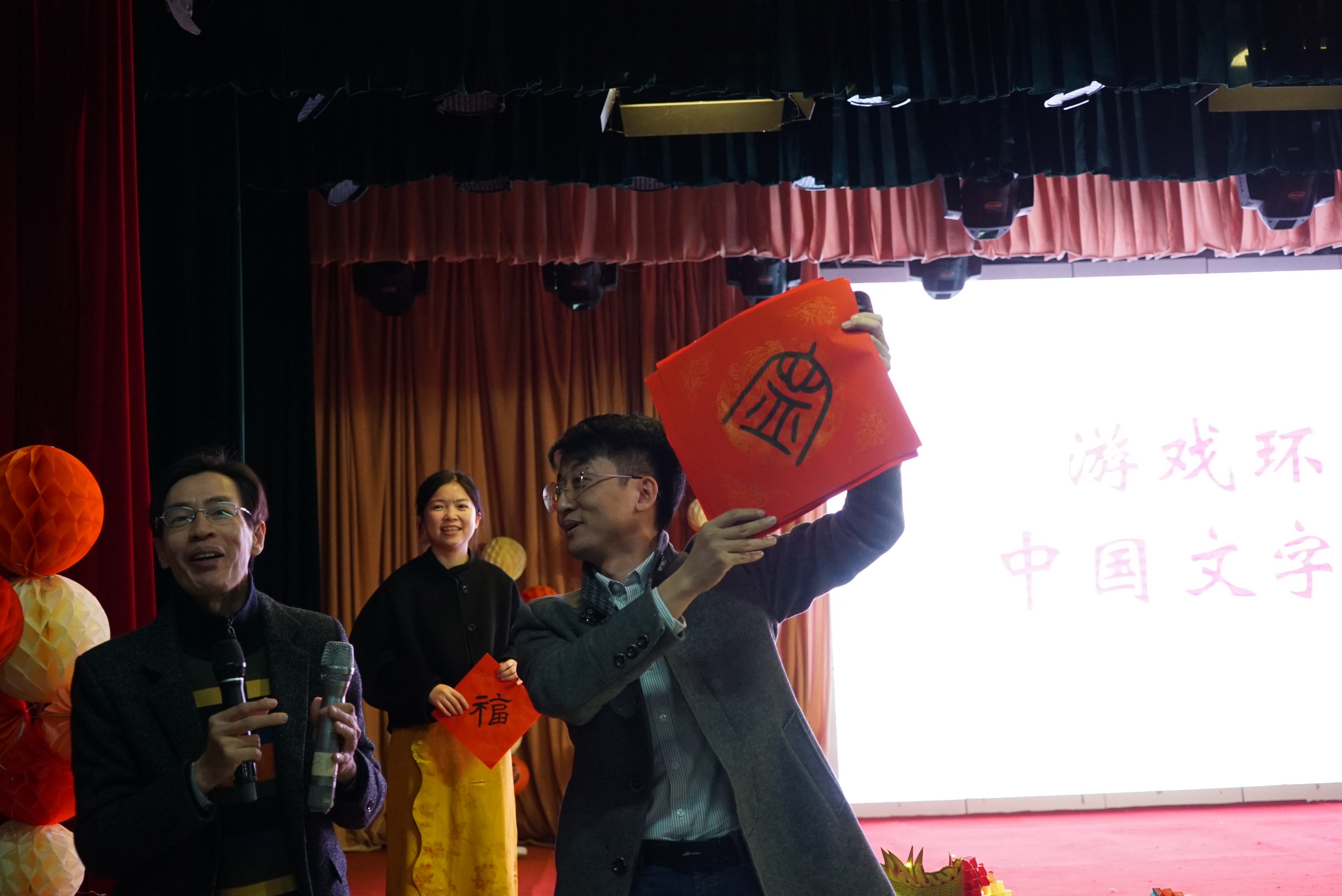 在热烈的现场氛围中,晚会进入游戏环节:文学人物猜猜猜。老师们踊跃参与到你划我猜的环节中,一言一行尽显人文底蕴与风趣洒脱。